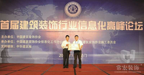 5月22日,首屆建筑裝飾行業信息化高峰論壇在美麗的廈門隆重舉行。常宏裝飾作為此次中國建筑裝飾協會增補為"中國建筑裝飾行業新型工業化科學研究院"的兩家企業之一,在大會上被授牌成立“新型工業化科學研究院”。至此,中國建筑裝飾行業科學研究院全國總數已達26家。