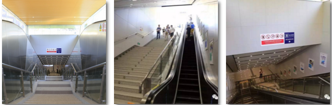 1.通過樓梯或者乘坐電扶梯到達站廳,殘疾人、攜帶大件行李或有其它特殊需要的乘客可乘無障礙電梯。