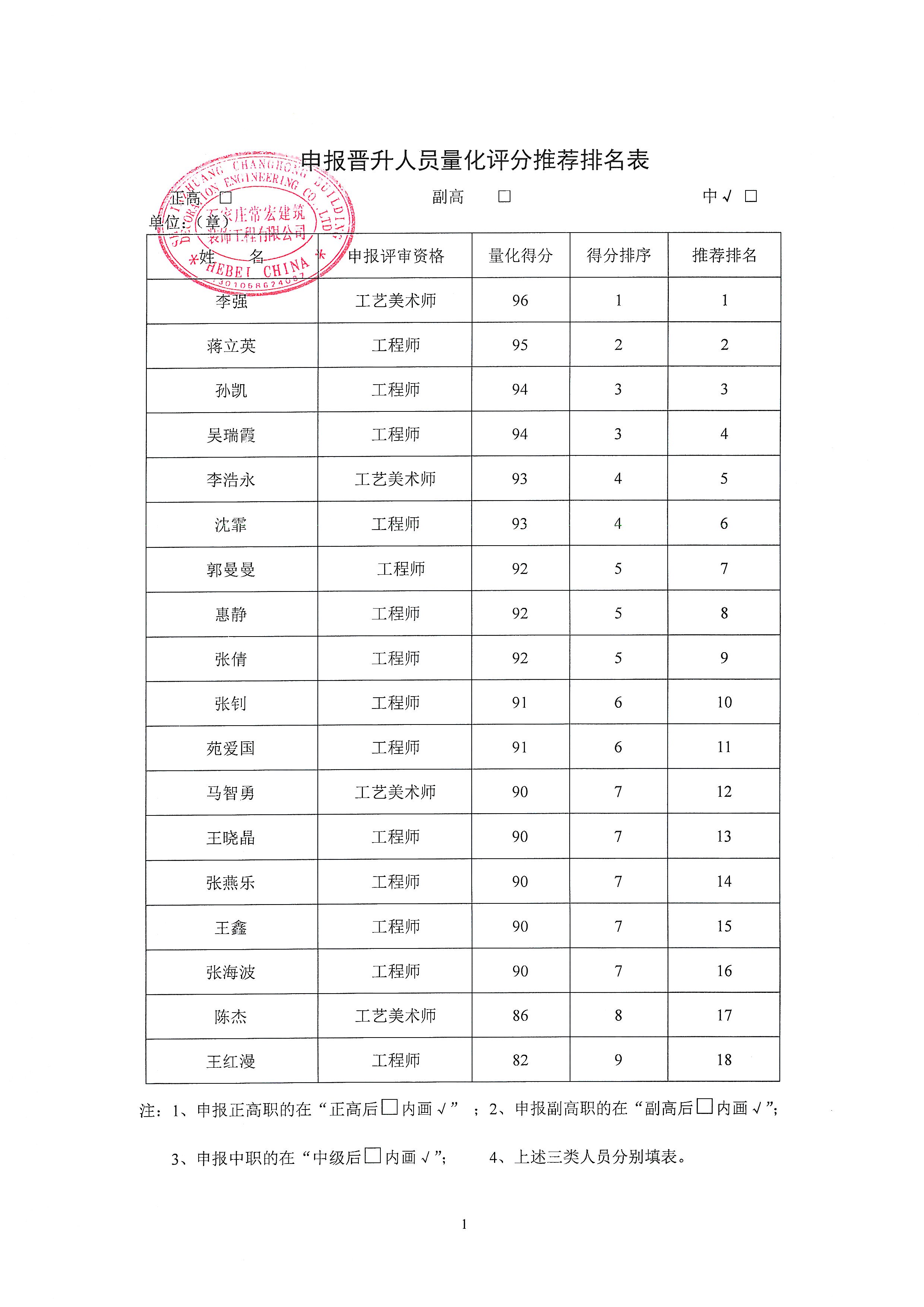 常宏裝飾高中級職稱公示文件