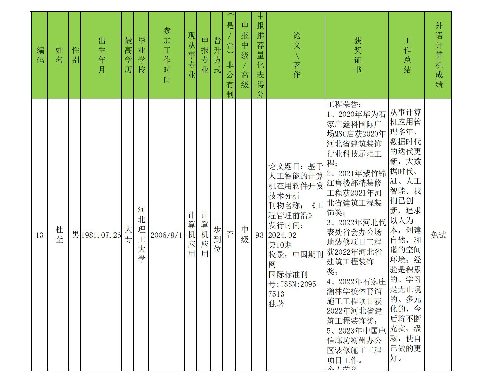 2024年中、高級職稱評審、推薦人選公示