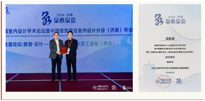 為了展現室內設計行業取得的豐碩成果,呈現高品質的原創室內設計作品,《IID室內設計》作品展面向廣大設計師征集作品,以促進學術交流與學習,推動室內設計行業發展。11月15日,在濟南年會歡迎晚宴上,中國建筑學會室內設計分會副理事長、中央美術學院教授、教育部高校建筑學專業教指分委室內設計教學工作委員會主任傅祎作《IID室內設計》作品展評審的相關介紹。現場為獲獎設計作品/設計師頒發了這項榮譽。河北地區設計師、常宏集團研究院總工程師吳歆威作品“裝配式低碳辦公空間”獲得《IID室內設計》作品展優秀獎。