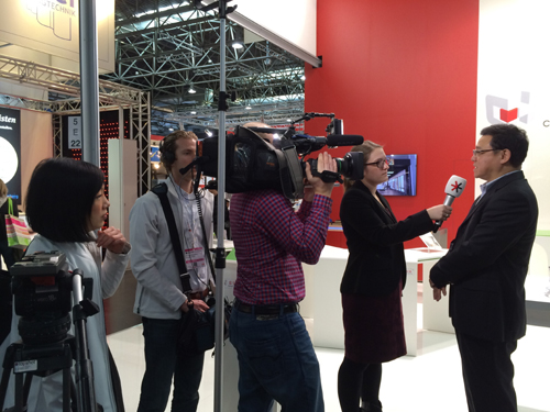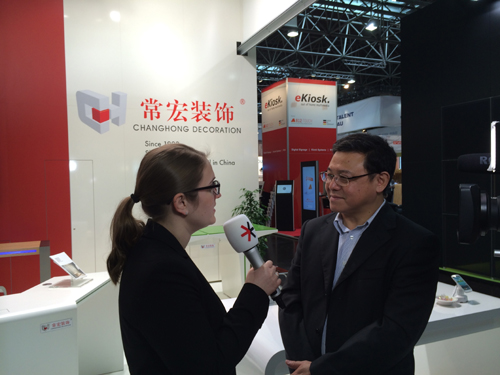 做為中國參展企業的代表,常宏裝飾總經理王躍先生在展位接受了展會主辦方(杜塞爾多夫展覽公司)的采訪,就歐洲零售業、中國零售業和EuroShop等主題闡述了常宏裝飾的觀點和建議。