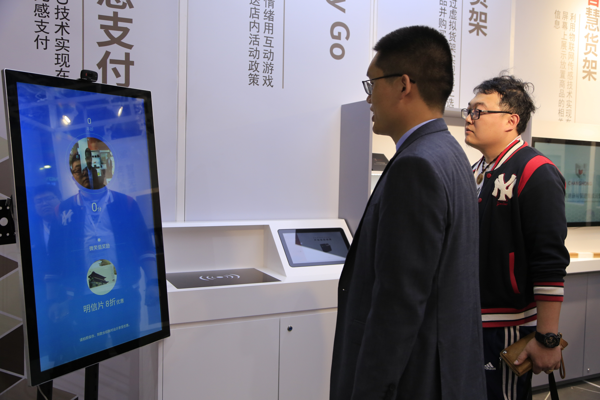 通過(guò)用戶與大屏的互動(dòng)來(lái)判定用戶的情緒表達(dá),結(jié)合預(yù)先設(shè)置的店內(nèi)活動(dòng)政策,達(dá)到用戶在游戲娛樂(lè)的情景下了解店內(nèi)相關(guān)活動(dòng)信息,并通過(guò)游戲結(jié)果來(lái)享受相關(guān)政策。