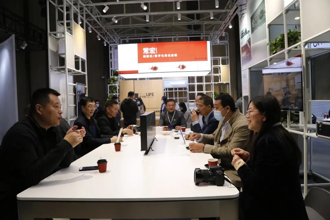 河北省風景園林學會副理事長兼規劃設計委員會主任鄭占峰先生、雄安城市規劃設計研究院總工程師夏雨女士、河北省工業設計協會秘書長于俊卯先生、河北省建筑科學研究院副院長邊智慧先生、孫錚室內設計工作室設計總監孫錚先生、蕉林・茶書屋創始人張迎軍先生、格藝晟景觀總經理趙紅女士等一行到訪常宏展位。