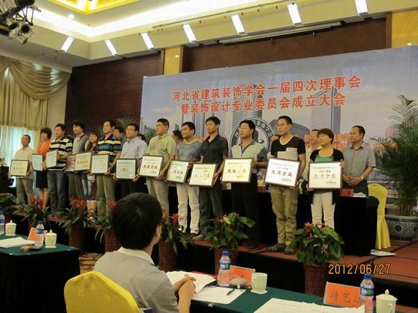 2012年6月27日河北省建筑裝飾學會組織召開第一屆第四次理事會暨裝飾設計專業委員會成立大會,會上對榮獲2011年河北省建筑裝飾行業先進企業、優秀企業家進行了表彰,常宏裝飾也又一次被評為2011年河北省建筑裝飾行業先進企業,王躍總經理被評為優秀企業家。省學會會長、秘書長及各副會長單位領導為獲獎單位進行了頒獎。